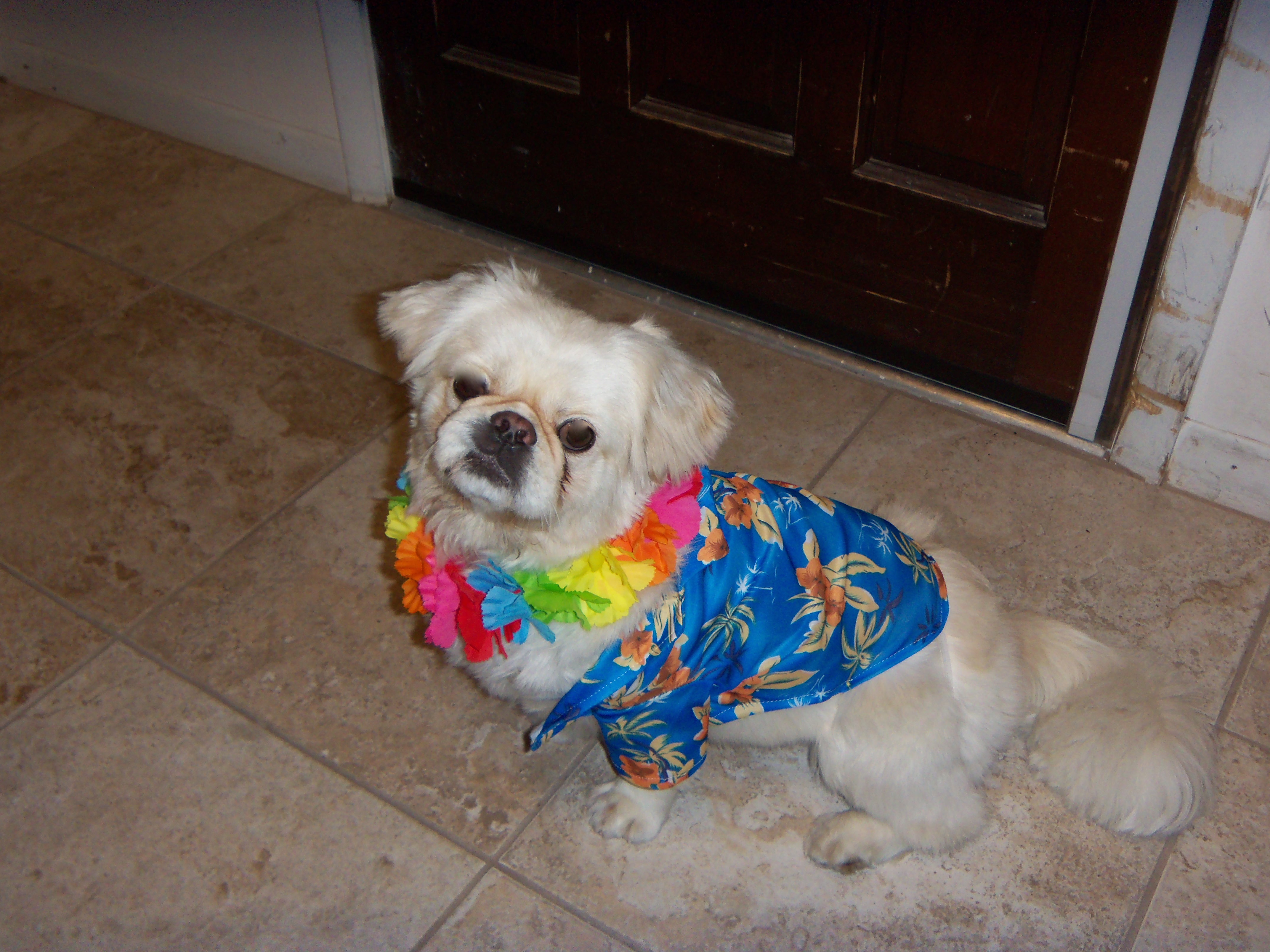 In the end, he’s a contest winning Hawaiian Guy. That’s right, the dogs are having a party and costume contest on Monday at daycare. As a columnist in Tallahassee says, this is what happens in America when you don’t have children. Silly yes, but I’m embracing it. If you see us on the street on Monday, I’ll be the one proudly walking the prancing Hawaiian Guy.